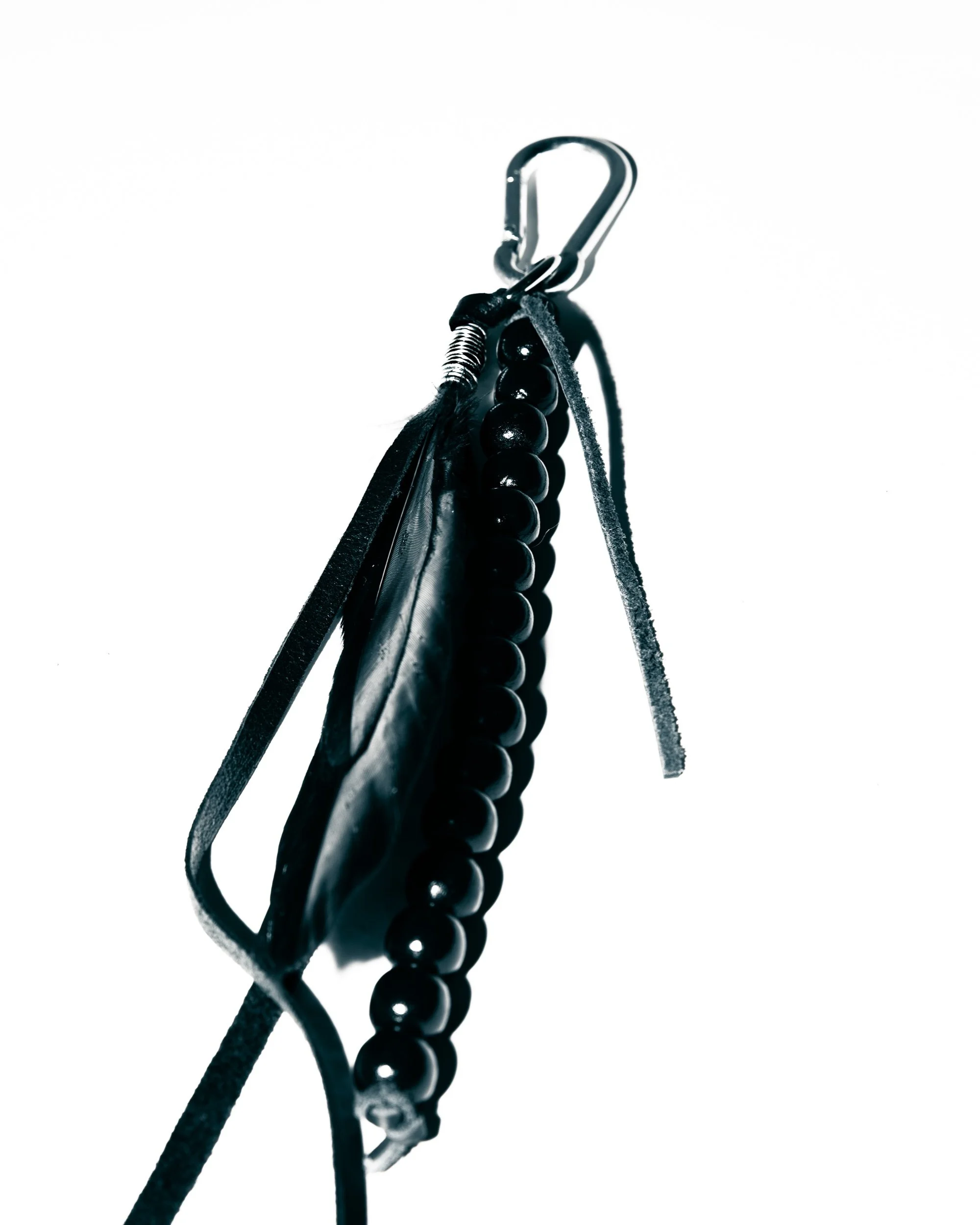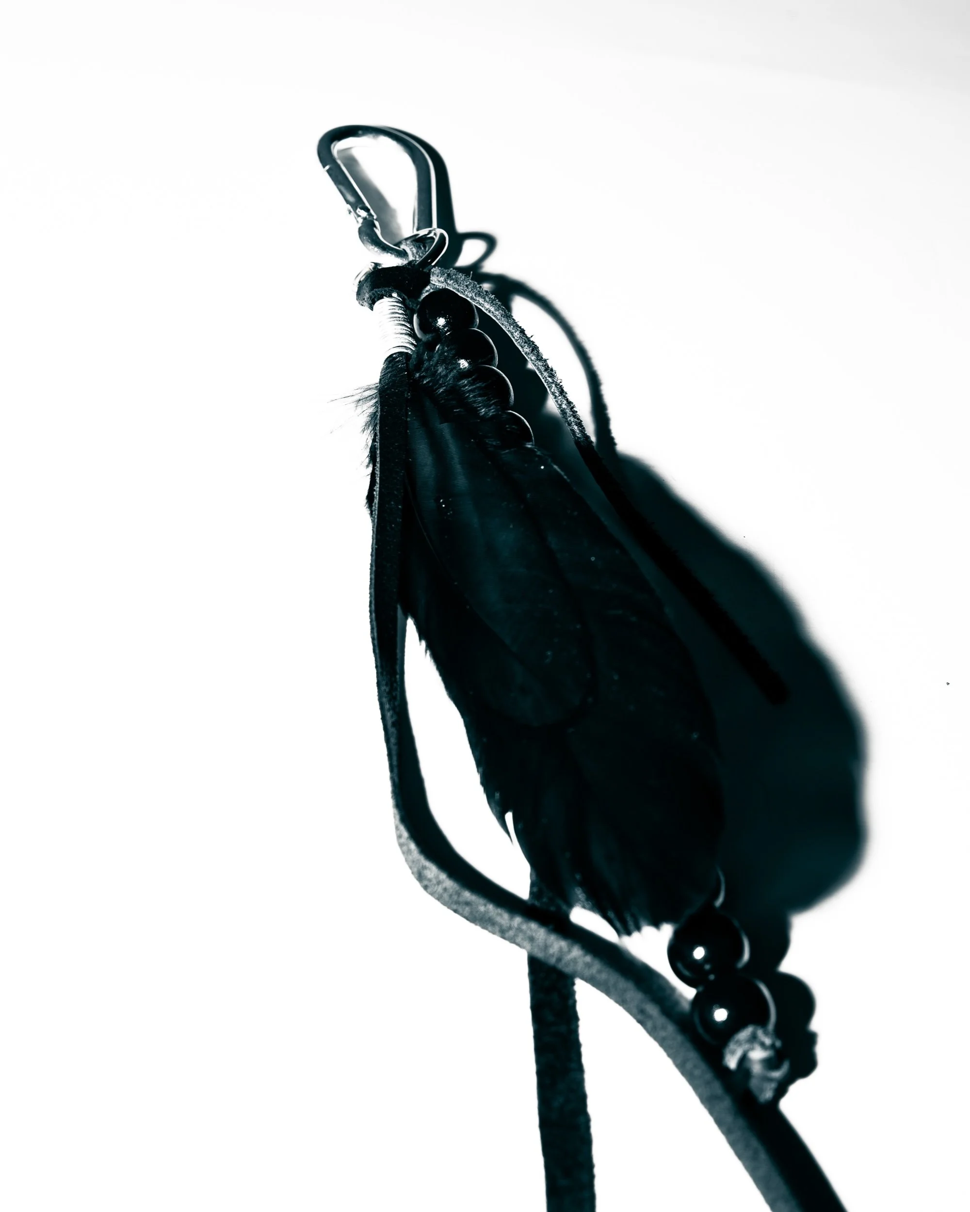 SHOP › TALISMAN I Image 1 of 3 Image 2 of 3 Image 3 of 3 TALISMAN I $40.00 Black feather, wooden beads and leather tassel bag charm. Add To Cart Added! Black feather, wooden beads and leather tassel bag charm.